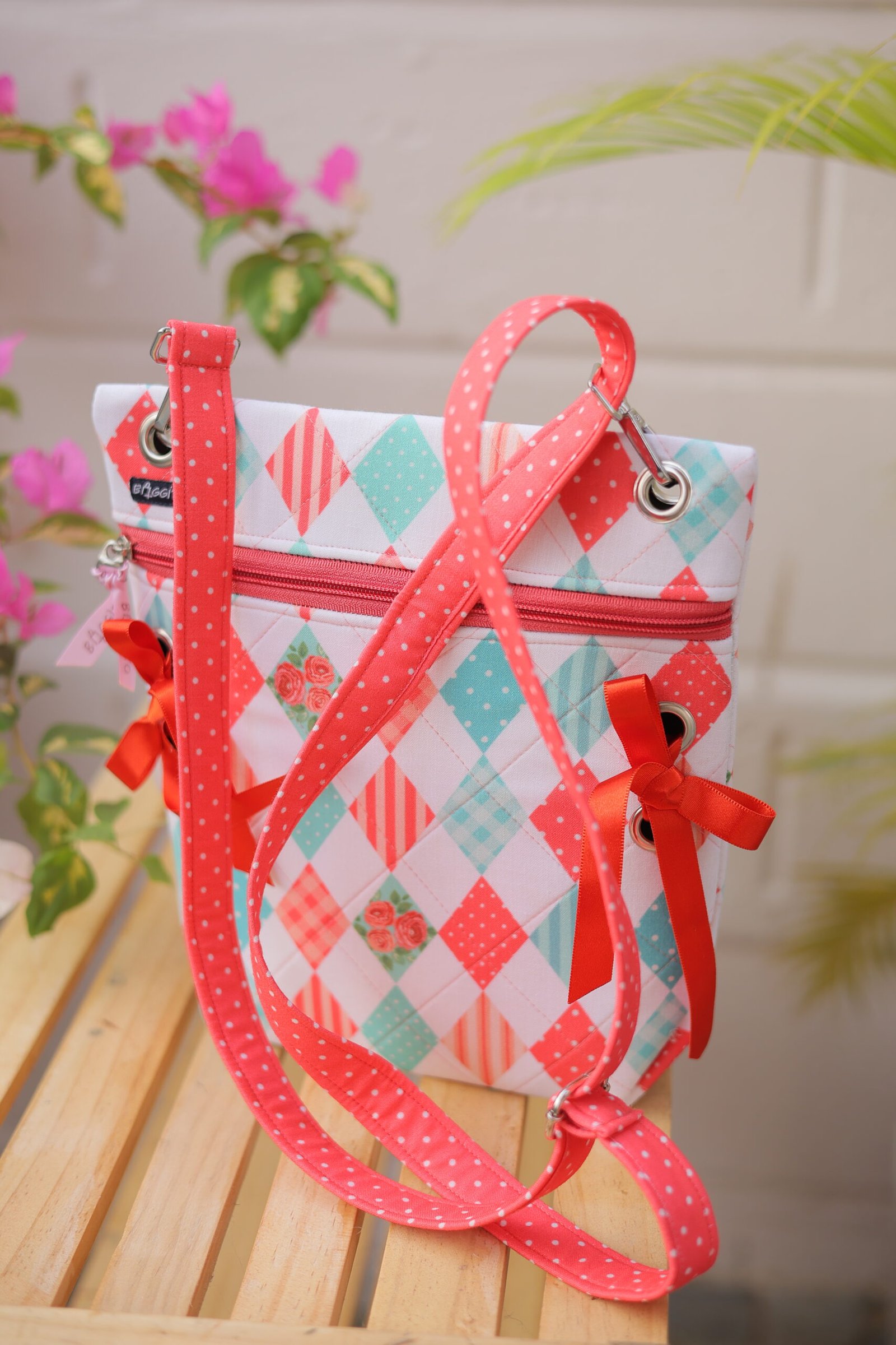 Baggito Floral Argyle Sling Bag with Bows