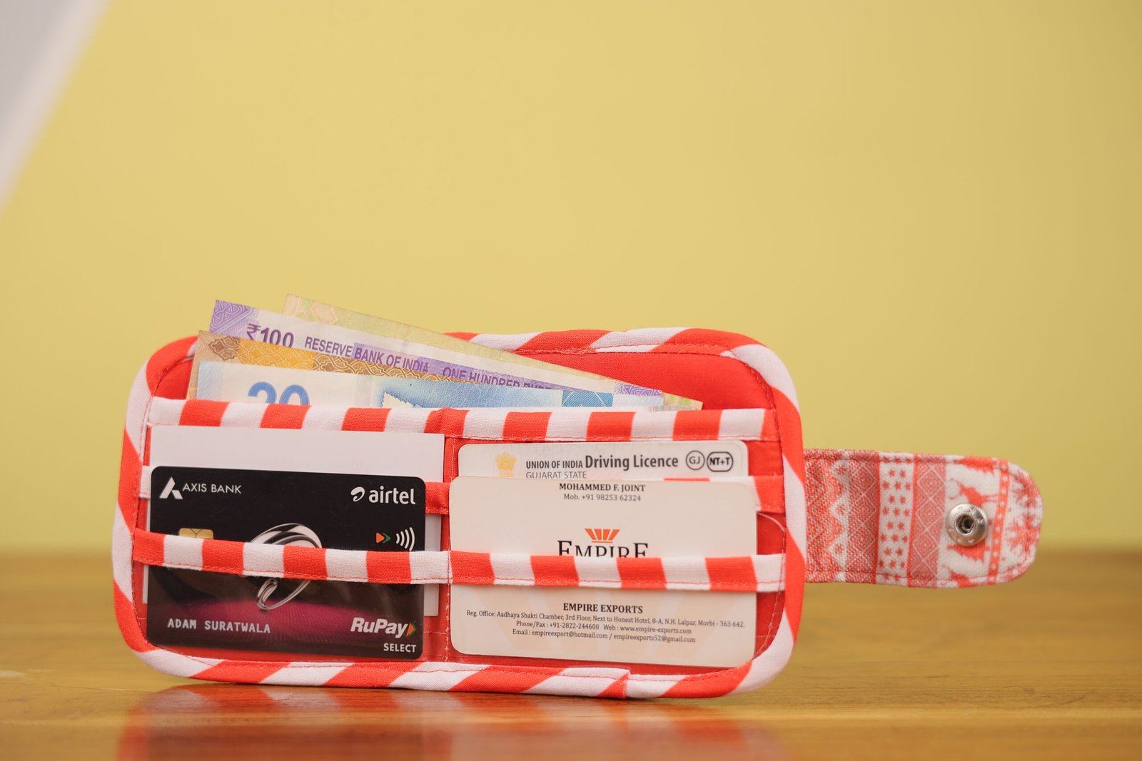 Designed for those who travel light, this wallet fits perfectly into smaller handbags or jacket pockets. It features a dual-closure system: a top zipper for loose change and valuables, and a snap-button strap that secures the main compartment.